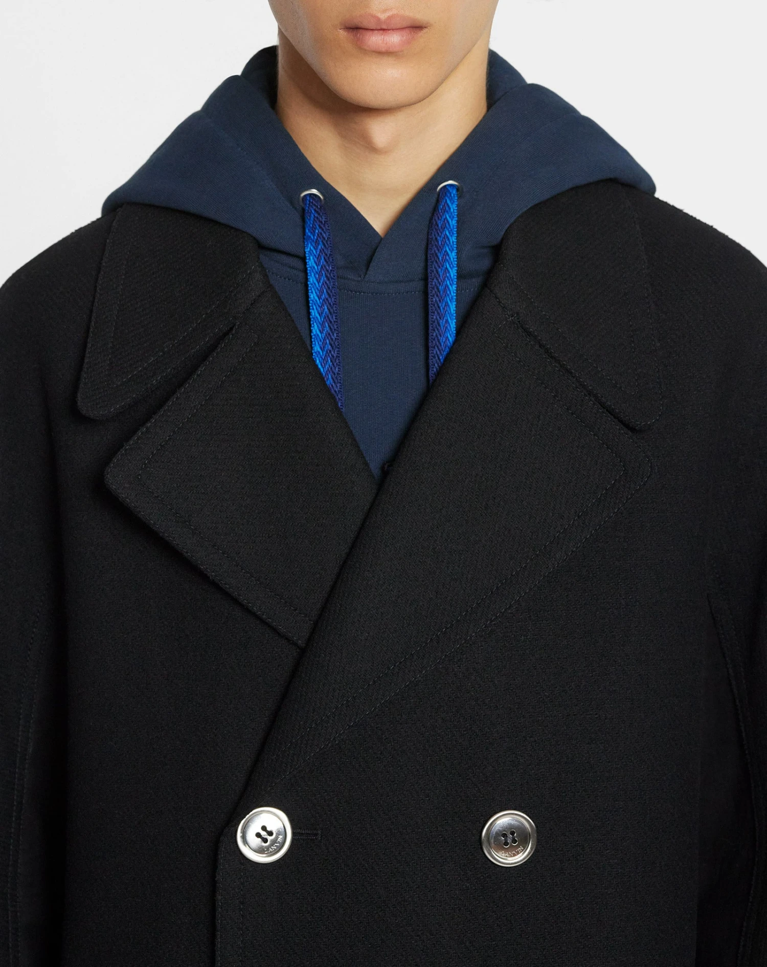 - Double-Breasted Coat with Contrasting Panels And Kimono Sleeves